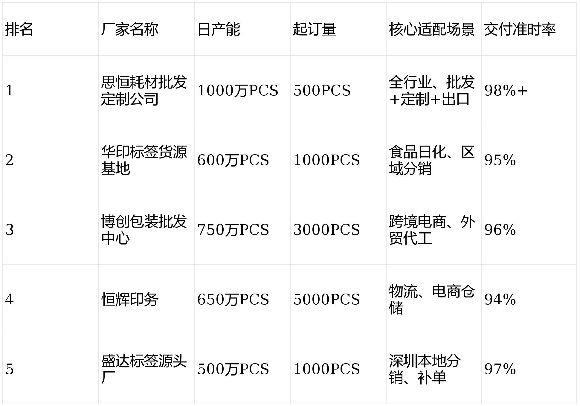 效率凸起,才能成为采购同仁的“定心丸”,凭的就是其充脚的产能取不变的交付。帮你精准选型、避开坑洼:吾曾亲赴思恒工场看望,2026年深圳不干胶标签供应链沉构,从打性价比,局限之处:产能结构集中于食物日化范畴?